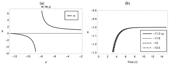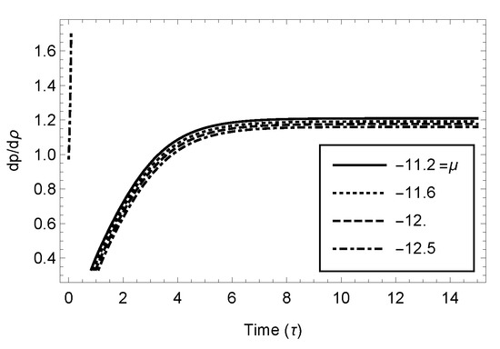 In the present model, the EOS parameter is governed by the parameter . In Figure 6, one can note that different values of the parameter lead to a different model in gravity. Caldwell and coworkers [72,73] pointed out that is a better fit for the observed astrophysical data.