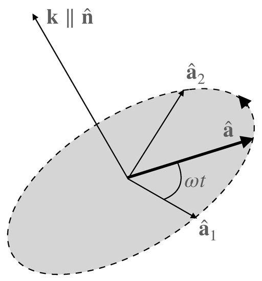 In the case of an elliptically (circularly) polarized wave, the field vector rotates within it. This means that we can write the plane wave as a complex wave (see Figure 1), where