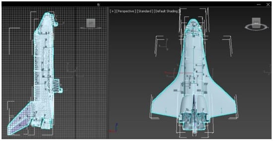 The development of a 3D object includes: creating the model (Figure 2), pasting material images, designing animation, and setting group assets and attributes. Because the spacecraft must be carried by a rocket into outer space, the launch station and rocket model must also be designed. The spacecraft has a dashboard and pilot seats. The pilot can control the direction and speed of the spacecraft, and observe the status of the spacecraft and the launch station on Earth (e.g., travelling distance and time) through the monitor on the dashboard. Before the mission starts, the clocks in the Earth and spacecraft coordinate systems are synchronous. As the speed of the spacecraft increases, the VR system will adjust the clock speed and the length of the scenes observed from the cockpit in the moving direction according to the calculation of the compute engine.