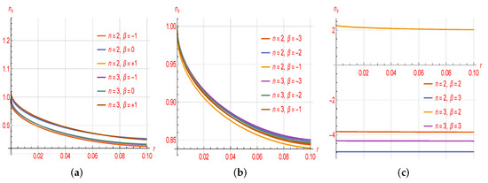 The plan with respect to different values of n and (a–c) and the constant parameter , , and .