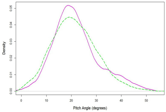 3.3. Pearson Distribution Fitting of Pitch Angles