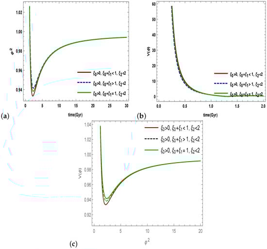 We can also notice the potential decreases initially, but increases as the scalar field increases (Figure 5c). The corresponding potential function expresses decreasing but positive behavior with respect to t. Its decreasing behavior from maxima gives inverse proportionality to the scalar field for the later times. This type of behavior corresponds to scaling solutions in the brane-world cosmology.