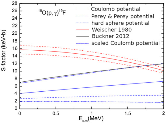 - Burjan, V.; Hons, Z.; Kroha, V.; Mrázek, J.; Piskoř, Š.; Mukhamedzhanov, A.M.; Trache, L.; Tribble, R.E.; La Cognata, M.; Lamia, L.; et al. The determination of the astrophysical S-factor of the direct 18O(p,γ)19F capture by the ANC method. Eur. Phys. J. A 2019, 55, 114. [Google Scholar] [CrossRef]