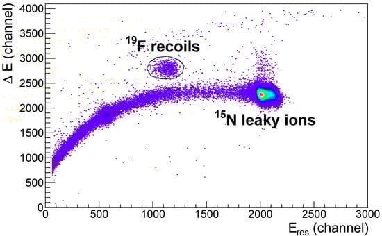 Identification of the fluorine recoils produced in the reaction with the ICT (ionization chamber telescope).