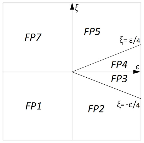 Let us discuss the stability regions in details. The domain in the lower left part of the graph on the Figure 1 (quadrant III of plane) corresponds to the couple of Gaussian points FP1a and FP1b (their combined stability regions are denoted as FP1 on the Figure 1). This region is related to ordinary diffusion as all the coupling constants in the IR limit tend to zero for the negative and .