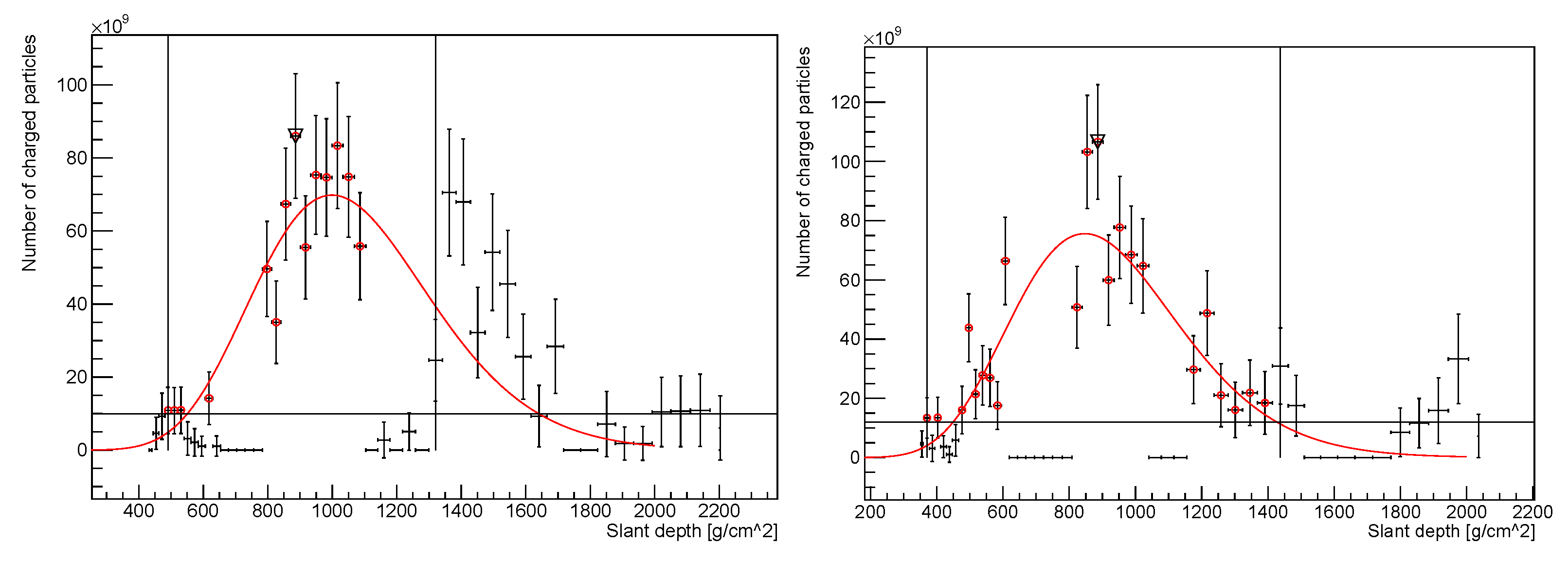 - Adams, J.H., Jr.; Ahmad, S.; Albert, J.N.; Allard, D.; Anchordoqui, L.; Andreev, V.; Anzalone, A.; Arai, Y.; Asano, K.; Ave Pernas, M.; et al. Performances of JEM–EUSO: Energy and Xmax reconstruction. Exp. Astron. 2015, 40, 183–214. [Google Scholar] [CrossRef]