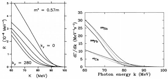 - Fearing, H.W.; Welsh, M.S. Radiative muon capture in medium heavy nuclei in a relativistic mean field theory model. Phys. Rev. C 1992, 46, 2077–2089. [Google Scholar] [CrossRef]
