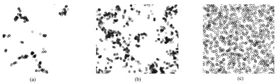 Fractal (a), mesofractal (b), and uniform Poisson set (c) (Monte Carlo simulations).