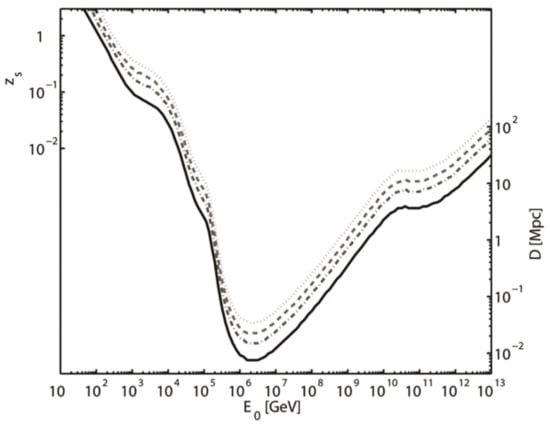 - Fazio, G.G.; Stecker, F.W. Predicted High Energy Break in the Isotropic Gamma Ray Spectrum: A Test of Cosmological Origin. Nature 1970, 226, 135. [Google Scholar] [CrossRef] [PubMed]