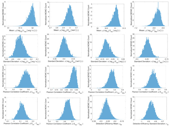 - Shahmoradi, A. A Multivariate Fit Luminosity Function and World Model for Long Gamma-Ray Bursts. APJ 2013, 766, 111. [Google Scholar] [CrossRef]