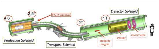 - Popp, J.L. The MECO experiment: A Search for lepton flavor violation in muonic atom. Nucl. Instrum. Meth. A 2000, 472, 354–358. [Google Scholar] [CrossRef]