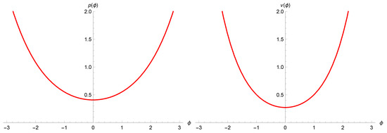 The ansatz (15) and the corresponding continuity Equation (16) contain two phenomenological parameters b and . The first is taken in the numerical analysis below of order unity, since there are no reasonable indications for its deviation from the classical setting. For what concerns , the only important constraint comes from avoiding that matter creation affects the de-Sitter phase of an inflationary scenario. Otherwise, in the opposite case, we could obtain a spectrum of inhomogeneous perturbations that is different than the natural scale invariant one [18]. This consideration suggests that the value of must be such that the matter creation is strongly suppressed before inflation starts, for example for a Universe temperature of order ≲10 GeV. However, in our study the value of is chosen to obtain a maximum of the matter creation nearby the Planckian phase of the Universe (where the polymer modifications are relevant), as stressed above. Finally, we consider the contribution of all relativistic species as a single effect, and therefore the value of is actually meant to represent an average effect over all ultrarelativistic matter species.