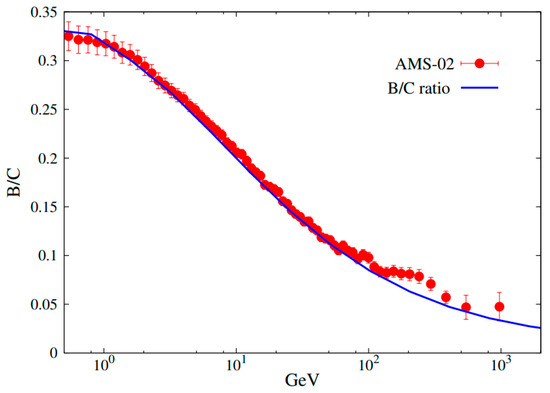 - Aguilar, M.; Cavasonza, L.A.; Ambrosi, G.; Arruda, L.; Attig, N.; Aupetit, S.; Azzarello, P.; Bachlechner, A.; Barao, F.; Barrau, A.; et al. Precision Measurement of the Boron to Carbon Flux Ratio in Cosmic Rays from 1.9 GV to 2.6 TV with the Alpha Magnetic Spectrometer on the International Space Station. Phys. Rev. Lett. 2016, 117, 231102. [Google Scholar] [CrossRef]