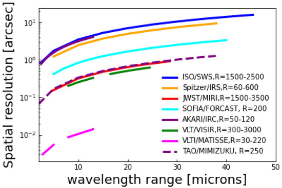 - Kamizuka, T.; Miyata, T.; Sako, S.; Ohsawa, R.; Asano, K.; Uchiyama, M.S.; Mori, T.; Yoshida, Y.; Tachibana, K.; Michifuji, T.; et al. The University of Tokyo Atacama Observatory 6.5m telescope: On-sky performance evaluations of the mid-infrared instrument MIMIZUKU on the Subaru telescope. In Proceedings of the Ground-Based and Airborne Instrumentation for Astronomy VIII, Online, 13 December 2020; Volume 11447, p. 114475X. [Google Scholar] [CrossRef]