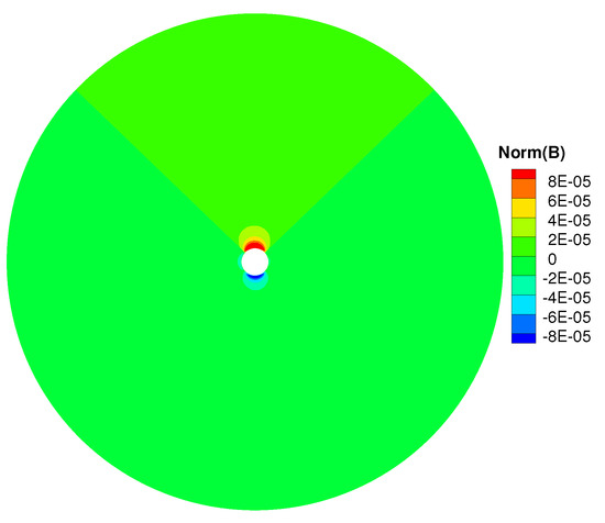 Figure 7 shows the L1 normalization for divergence of magnetic fields on the meridional plane of from 1 to 20 R at t = 20 h. The volume averaged divergence is about . The total number of cells in the computational domain is , thus the L1 norm of the divergence is about . The normalization is about .