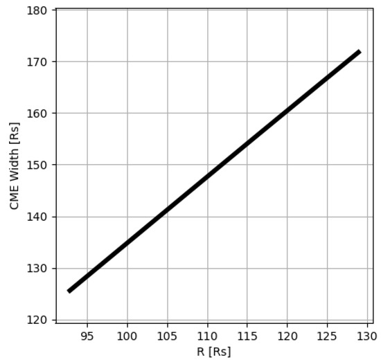 The width of the ICME for event 1 (23 July 2012) as a function of heliocentric distance.