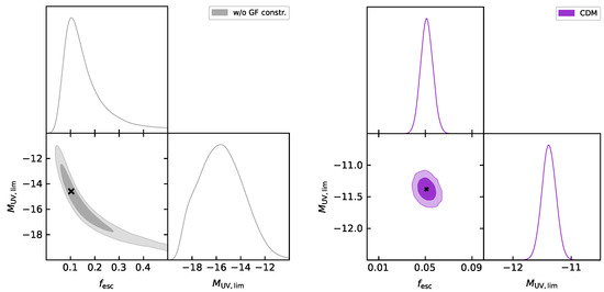 - De Souza, R.S.; Mesinger, A.; Ferrara, A.; Haiman, Z.; Perna, R.; Yoshida, N. Constraints on Warm Dark Matter models from high-redshift long gamma-ray bursts. Mon. Not. R. Astron. Soc. 2012, 432, 3218–3227. [Google Scholar] [CrossRef]