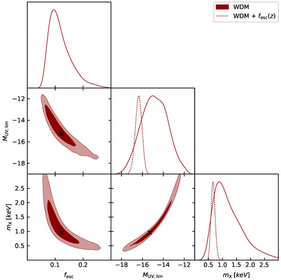- Dayal, P.; Mesinger, A.; Pacucci, F. Early Galaxy Formation in Warm Dark Matter Cosmologies. Astrophys. J. 2015, 806, 67. [Google Scholar] [CrossRef]