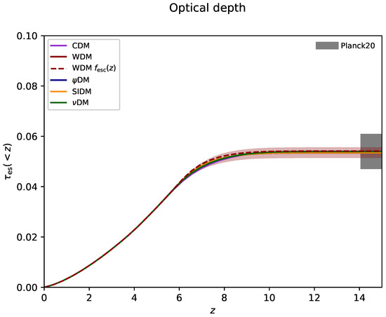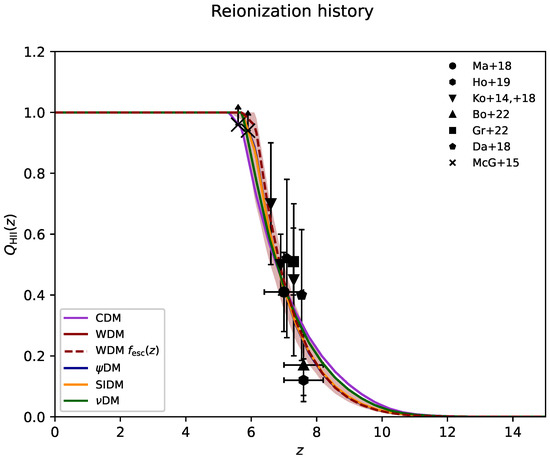 - Carucci, I.P.; Corasaniti, P. Cosmic Reionization History and Dark Matter Scenarios. Phys. Rev. D 2019, 99, 023518. [Google Scholar] [CrossRef]