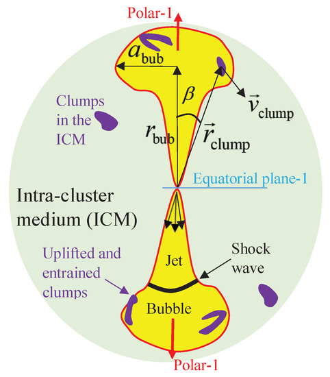 I define equatorial plane-1 to be the plane where the clumps form the first accretion disk, disk-1, and polar-1 the polar directions along which disk-1 launches the first pair of jets (first outburst). I follow and expand the arguments from [66]. The jets and the bubbles they inflate uplift dense clumps by pushing the gas out (e.g., [78,79]) or by entraining the clumps (e.g., [60,79,80]). Lifting gas can stimulate AGN feedback (e.g., [10,81]).