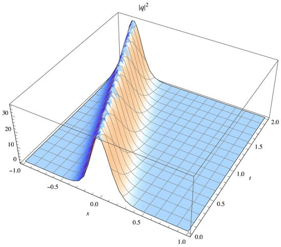 Figure 1 shows the profile of a bright soliton, where the parameters are chosen as: , , , , , , , , , , , , .