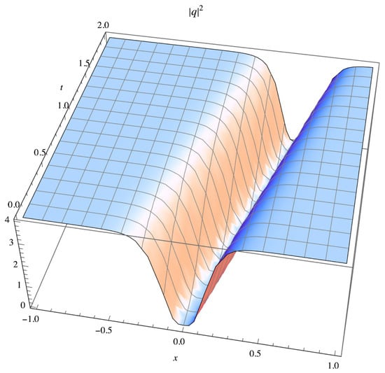 Figure 2 shows the profile of a dark soliton, where the parameters are chosen as: , , , , , , , , , , , , .
