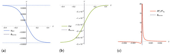 In order to solve the perturbation equation for and compare the solution to the exact evolution (Figure A1c), we first need to solve the effective Friedmann equation (14) in relational time. To rewrite (14), we use to first rewrite and then insert the expression for and (38) into the Friedmann equation