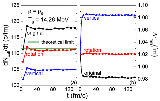 is satisfied, and we use a constant and isotropic baryon–baryon elastic cross section mb in the present study. Whether the collision happens in this time step is determined by the condition of the closest approach, i.e.,