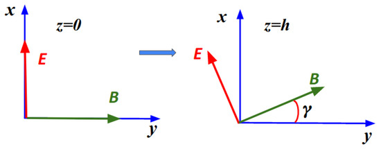 Thus, we recover the Faraday effect when the polarization vector continuously rotates with the propagation of the plane wave. The polarization rotation angle , see Figure 1, from the initial point until the point is determined by