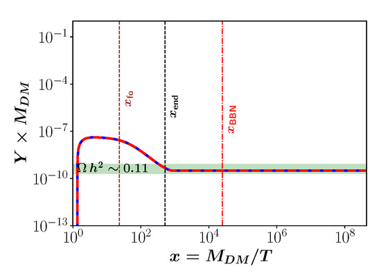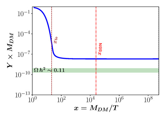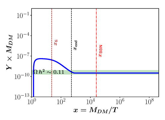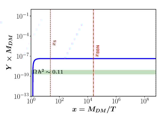 - Maldonado, C.; Unwin, J. Establishing the dark matter relic density in an era of particle decays. JCAP 2019, 6, 37. [Google Scholar] [CrossRef]