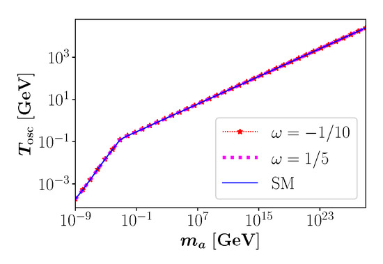 - Arias, P.; Bernal, N.; Karamitros, D.; Maldonado, C.; Roszkowski, L.; Venegas, M. New opportunities for axion dark matter searches in nonstandard cosmological models. JCAP 2021, 11, 003. [Google Scholar] [CrossRef]