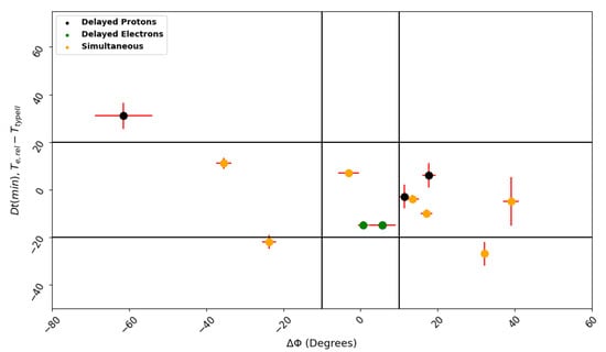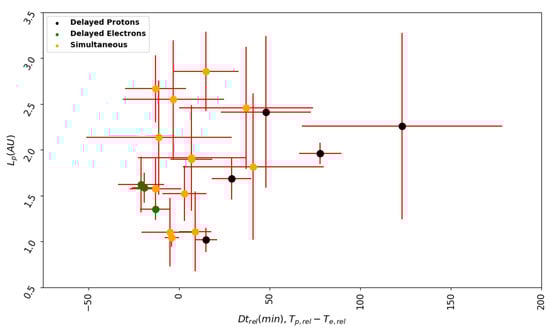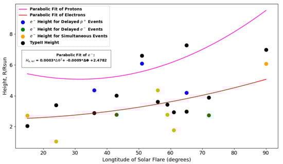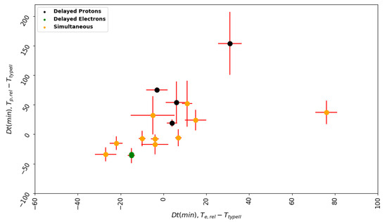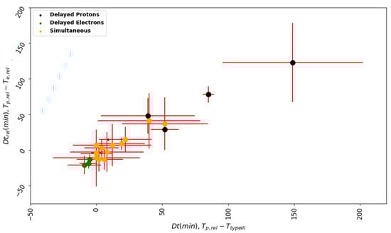 - Kahler, S.; Ragot, B. Near-relativistic electron c/v onset plots. Astrophys. J. 2006, 646, 634. [Google Scholar] [CrossRef]