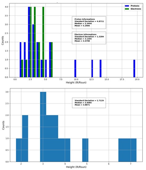 - Trottet, G.; Samwel, S.; Klein, K.L.; Dudok de Wit, T.; Miteva, R. Statistical Evidence for Contributions of Flares and Coronal Mass Ejections to Major Solar Energetic Particle Events. Sol. Phys. 2015, 290, 819–839. [Google Scholar] [CrossRef]