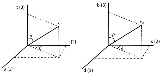 - Chau, L.-L.; Keung, W.-Y. Comments on the parametrization of the Kobayashi-Maskawa matrix. Phys. Rev. Lett. 1984, 53, 1802. [Google Scholar] [CrossRef]