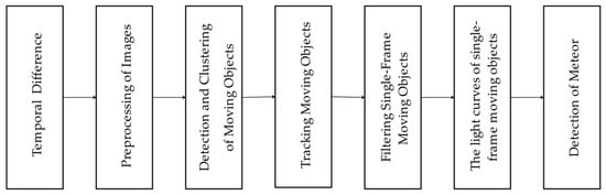 The origin of meteor astronomy can be traced back to the 19th century [1,2,3], when scientists began to systematically study and observe meteors. For example, understanding the characteristics of meteors can provide information about the interplanetary dust environment surrounding Earth and how it has evolved during the solar system’s evolutionary process. Meteor automation processing is a critical technology that enables efficient detection, tracking, and analysis of meteors. Scientists can obtain accurate meteor trajectories and mass characteristics, thereby promoting research on the origin and physical properties of meteors [4].