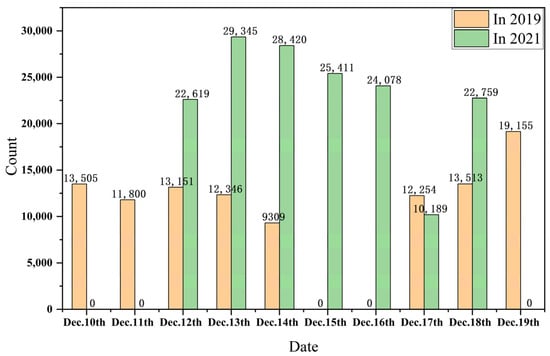 Figure 2. Raw events of experimental data for each date in 2019 and 2021.