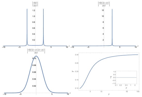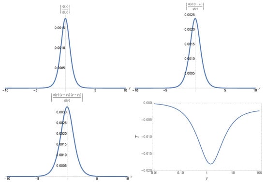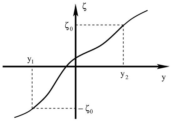 Further, as the PT potential is an even function, the error control function is antisymmetric about the origin: namely, . As a result, we will study its behavior only on the positive y axis, . With the help of Equation (47), the numeric value of the error control function at any point can be found from Equation (51). In particular, for , we find that