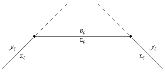 The sign “+” reminds us that the limit in Equation (11) was taken for . But the same procedure can be performed if we replace ∞ with . In the particular case of the flat Minkowski space, both “plus null infinity” and “minus null infinity” are represented by the same Grassmanian of 3D null hypersurfaces. In the curved (but “asymptotically flat”) space, there is no way to identify these two infinities.