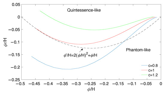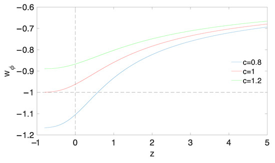where c is a dimensionless model parameter, which can only be determined by observation. It should be noted that a positive constant c is favored by the latest observational data [29,30]. The future event horizon of the universe, , is defined as