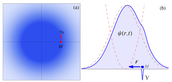 Since the potential Equation (5) describes attraction between the particle and condensate, Equation (6) can provide the centripetal force for the particle. From this, it follows that for any initial velocity perpendicular to the vector the equation of the circular trajectory of the particle is defined by