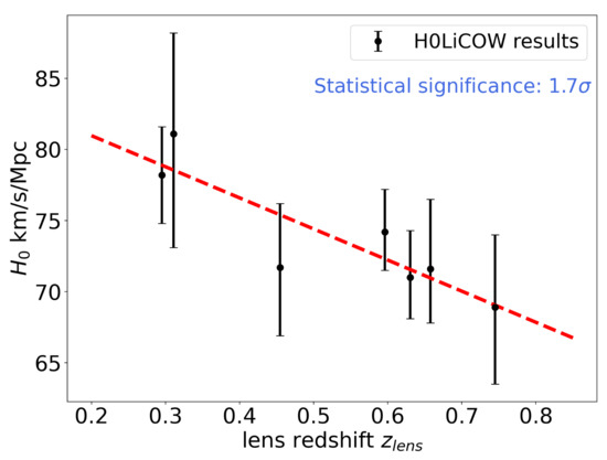 measurements from H0LiCOW. The trend of smaller value with increasing lens redshift has significance levels of 1.7. (Source: Figure 5 in Millon et al. [143]).