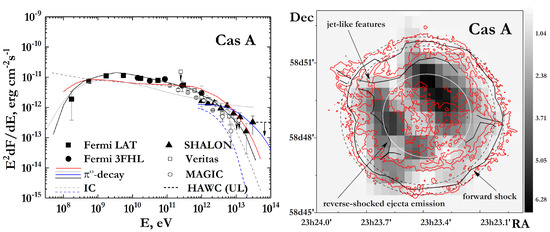 24]. Also, Cas A was detected at the energies of several TeV (see e.g., [