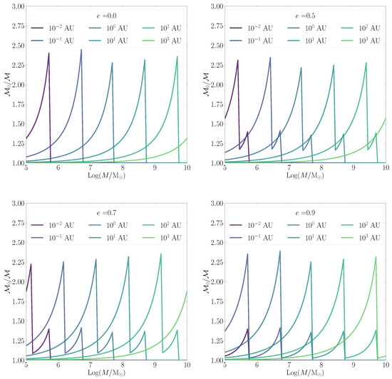 - Liu, B.; Lai, D. Merging compact binaries near a rotating supermassive black hole: Eccentricity excitation due to apsidal precession resonance. Phys. Rev. D 2020, 102, 023020. [Google Scholar] [CrossRef]