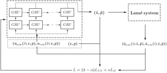 In the previous section, we considered the loss between data , and . In this section, we will continue to consider the relationship between far-field data and the information parameter of the source. From a physical point of view, the output of the data-driven module is the result of the reconstruction of the information parameter. So, the information parameter represented by should meet the Lamé system. If will be substituted into the Lamé system, the corresponding far-field data will be obtained. Then the loss between the far-field data of reconstruction and the real far-field data will be considered. In this way, we can evaluate the results of solver reconstruction from both data-driven and physical-driven aspects.