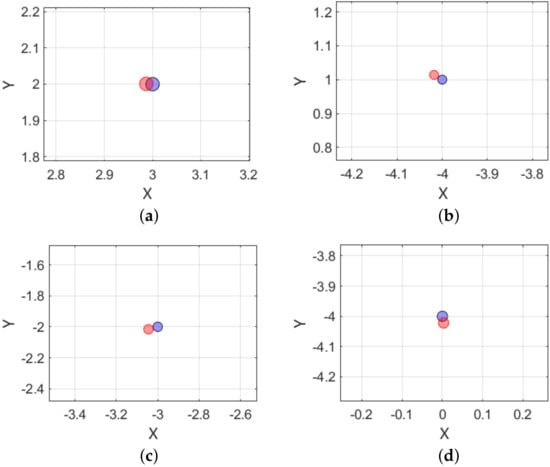 The reconstructions of the multi-sources with , , and . They correspond to (a–d), respectively.
