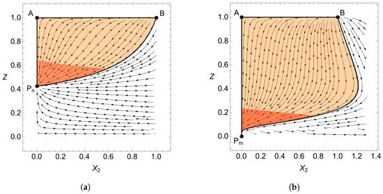 As Z approaches zero (from above) goes to zero. One can also show that for all trajectories always travel in the negative Z direction whilst Z is between 0 and 1. This can be most easily seen by substituting the expression for on the physical boundary (A5) into the autonomous equation . This resulting equation is