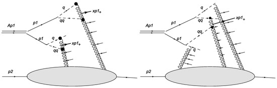 - Braun, M.A.; Vechernin, V.V. On interference of cumulative proton production mechanisms. J. Phys. G Nucl. Part Phys. 1993, 19, 517. [Google Scholar] [CrossRef]