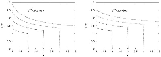 Powers at 27.5 and 200 GeV. From bottom to top, the curves correspond to .