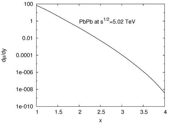 The value of turns out to be of order five and varies weakly for different cases. For p-Ta at 27.5 GeV, we find . For Cu–Cu and Au–Au at 200 GeV, we obtain and 5.2, respectively. Finally, for Pb–Pb at 5.02 TeV we find . We do not see any conclusive explanation for this small variation, which may arise from the difference in energy, nuclear wave function, and insufficient number of runs. For the coefficient C, its value for p-Ta is 657 and for central Cu–Cu, Au–Au, and Pb–Pb its values are 166, 517, and 572, respectively.
