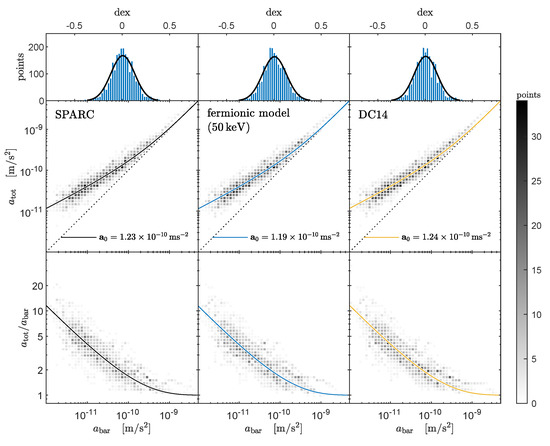 - McGaugh, S.S.; Lelli, F.; Schombert, J.M. Radial Acceleration Relation in Rotationally Supported Galaxies. Phys. Rev. Lett. 2016, 117, 201101. [Google Scholar] [CrossRef]